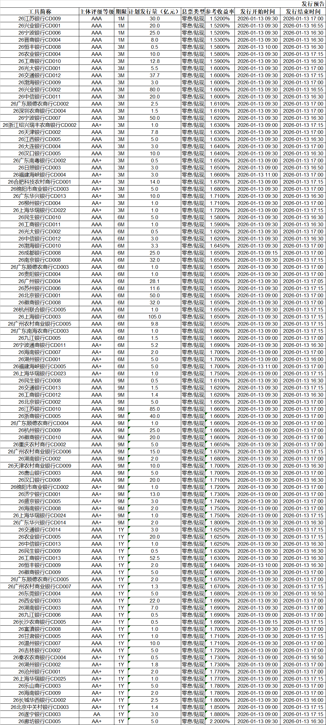 (三)同业存单发行预告